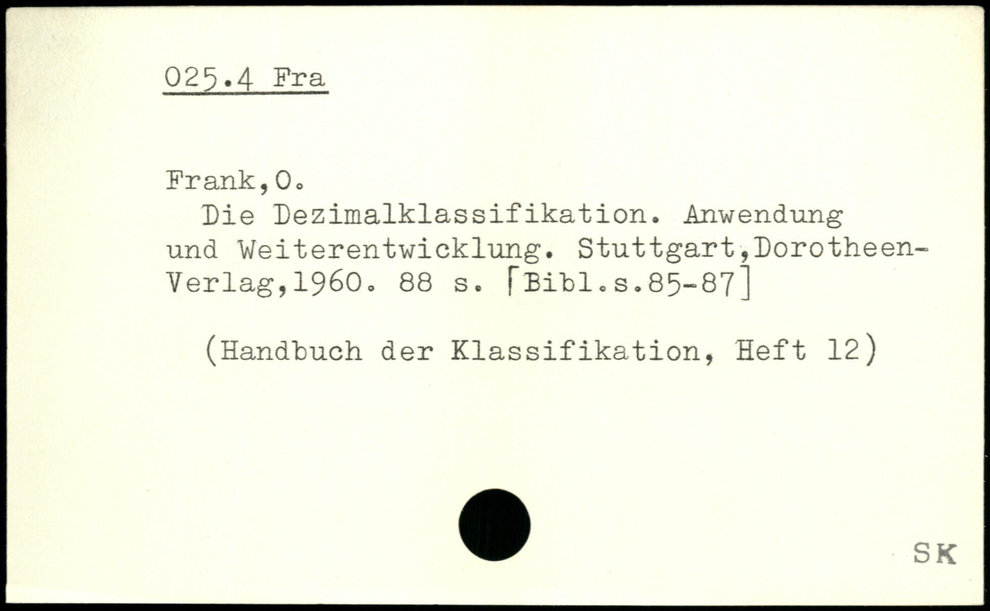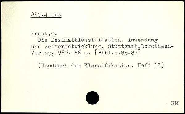 Die Dezimalklassifikation. Anwendung und Weiterentwicklung.