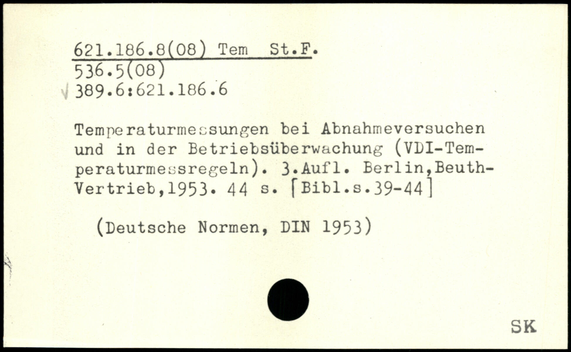 Temperatürmecsungen bei Abnahmeversuchen und in der Betriebsüberwachung (VDI-Tem-peraturmessregeln).
