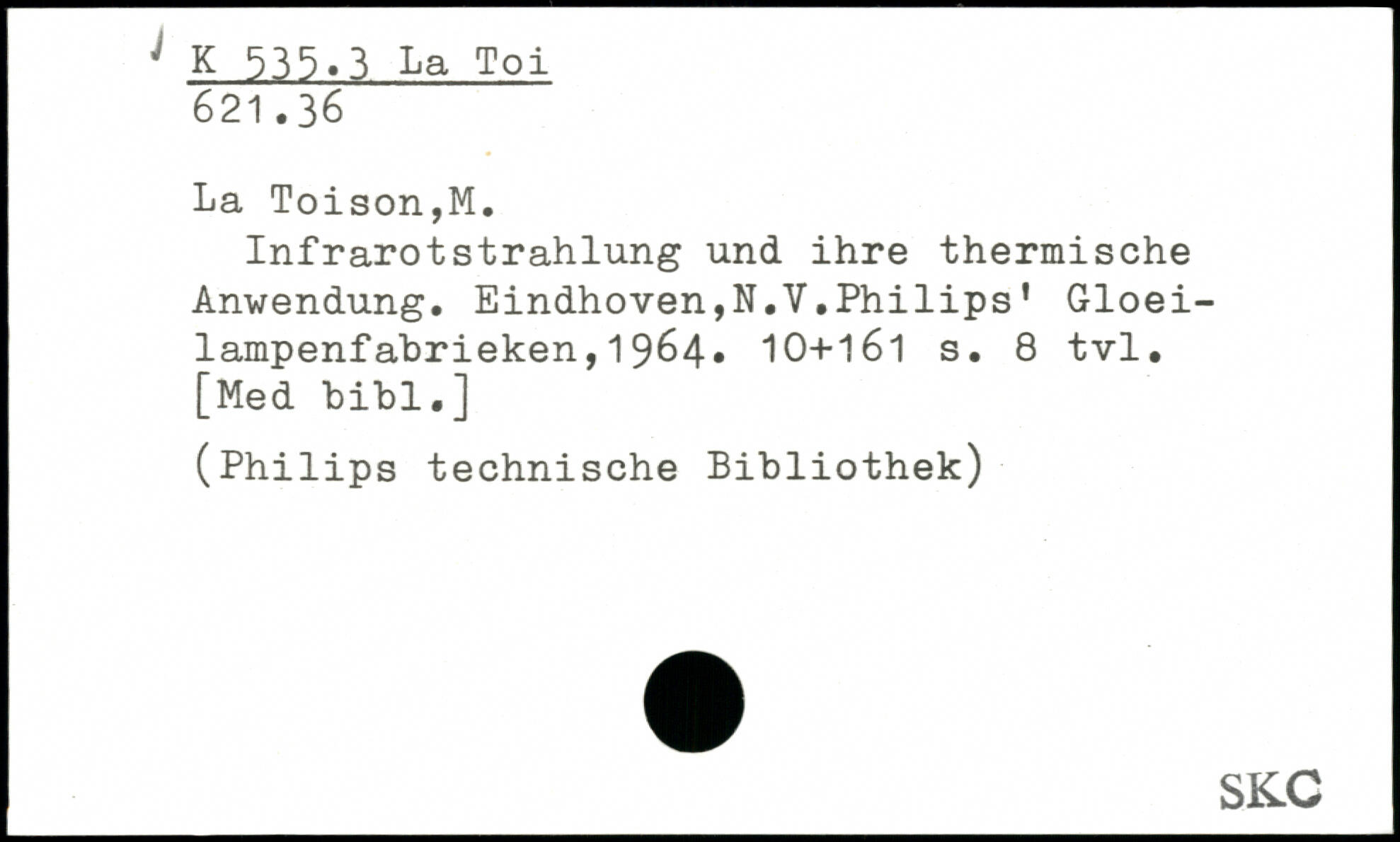 Infrarotstrahlung und ihre thermische Anwendung. Eindhoven,N.V.Philips’ Gloei-lampenfabrieken, 1 964, 10-4-1