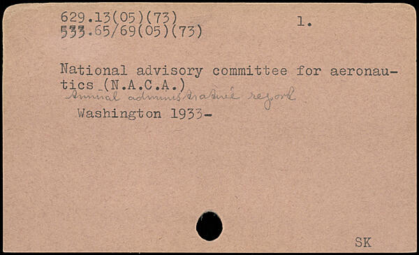 National advisory committee for aeronautics _(N.A.C.A.) .^VvvvvvcX /Uo V/ashington 1933- w SK
