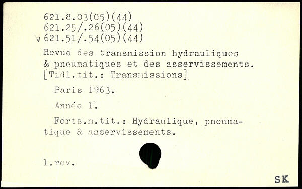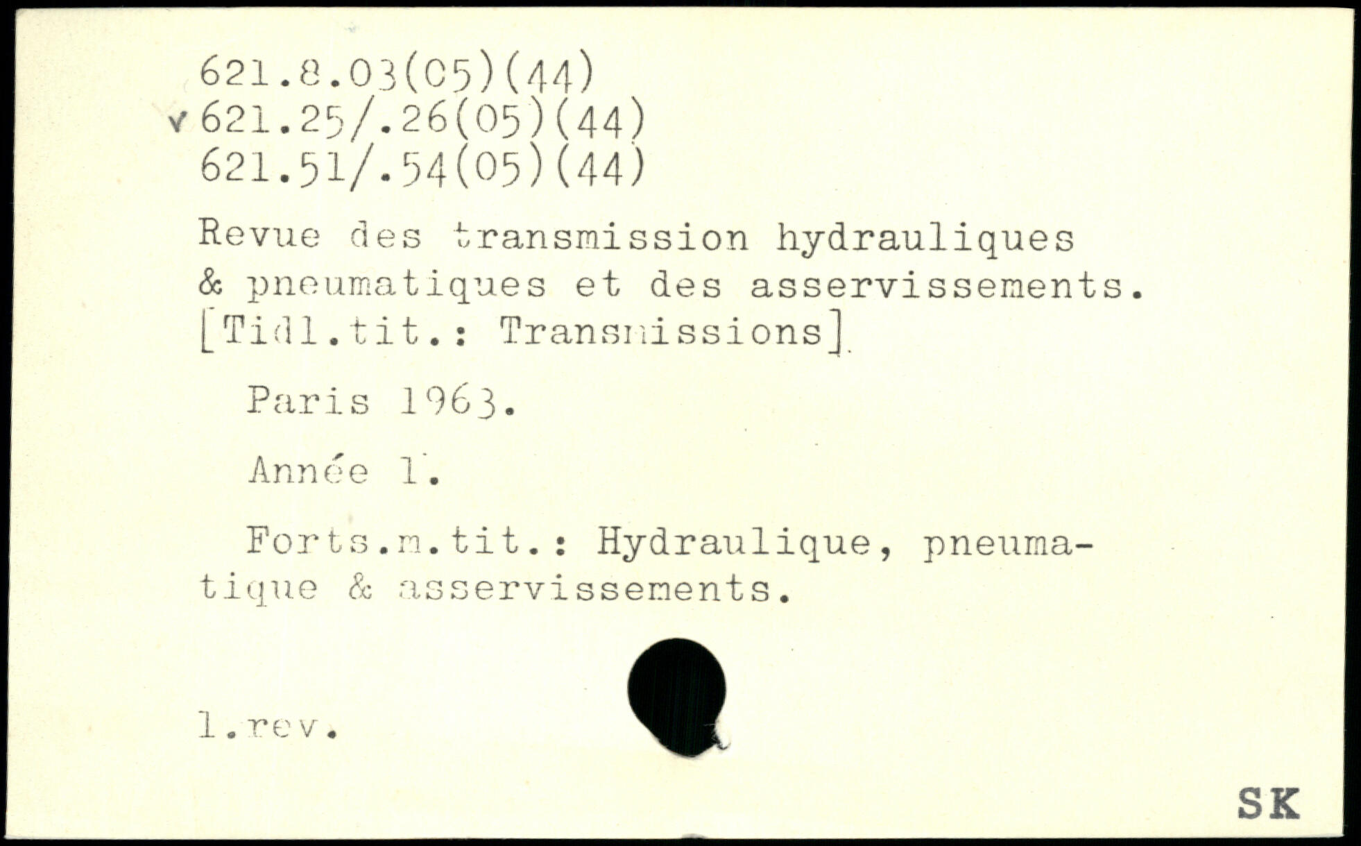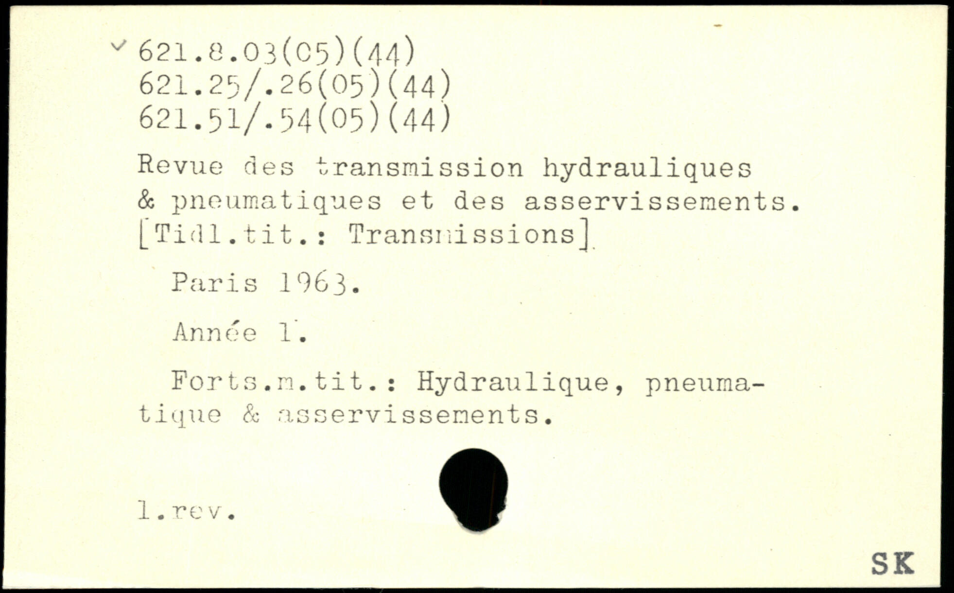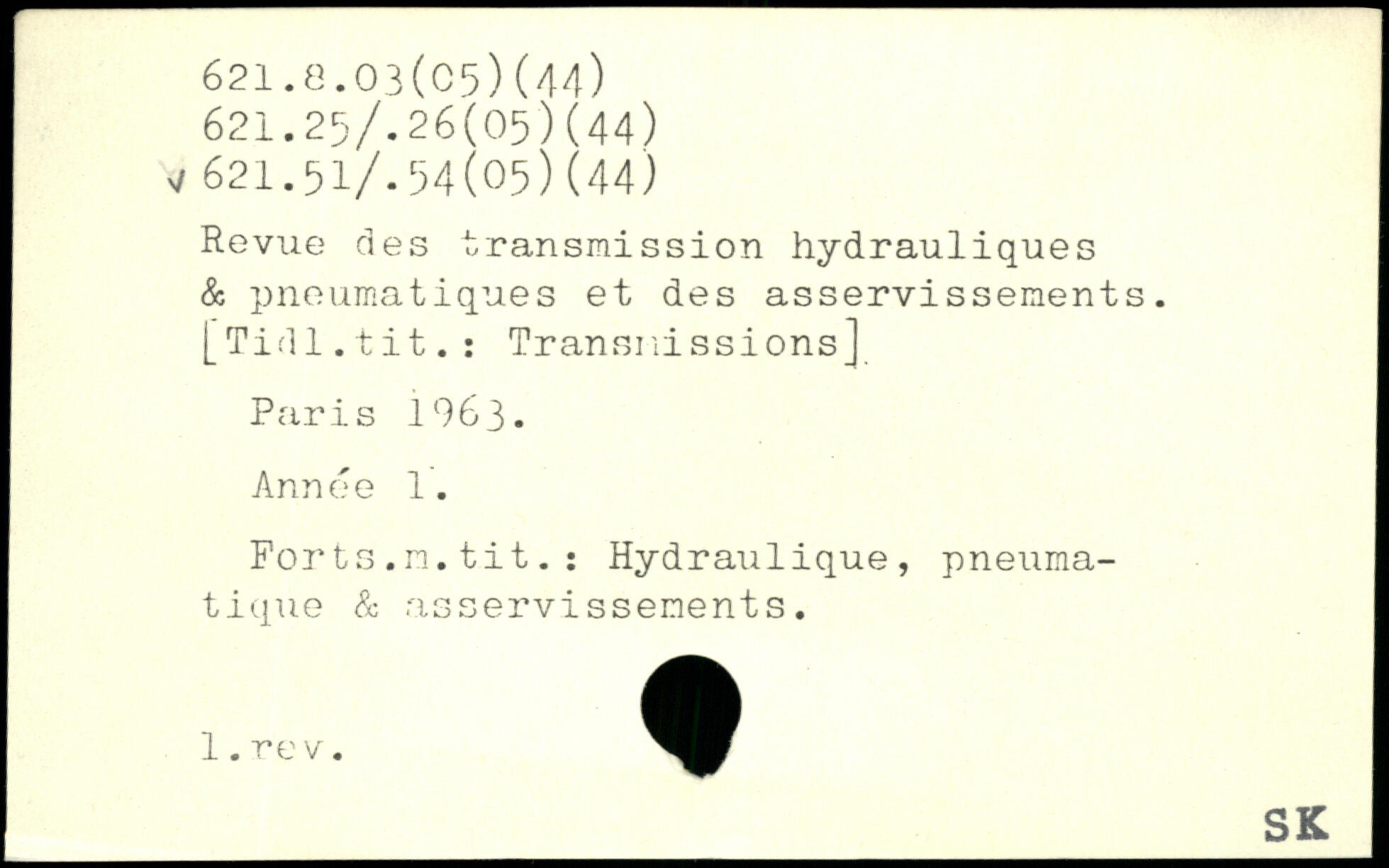 Revue des transmission hydrauliques & pneumatiques et des asservissements. [Tidl.tit.: Transmissions]