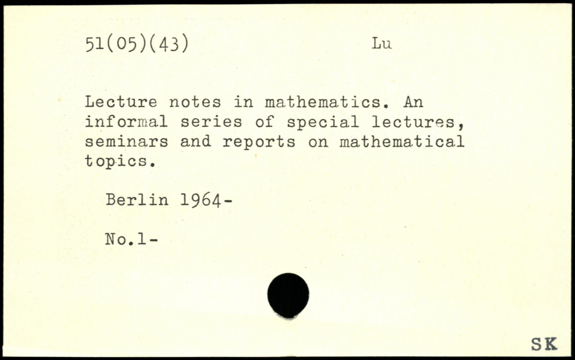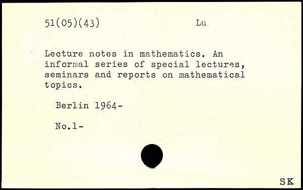Lecture notes in mathematics. An informal series of special lectures, seminars and reports on mathematical topics.