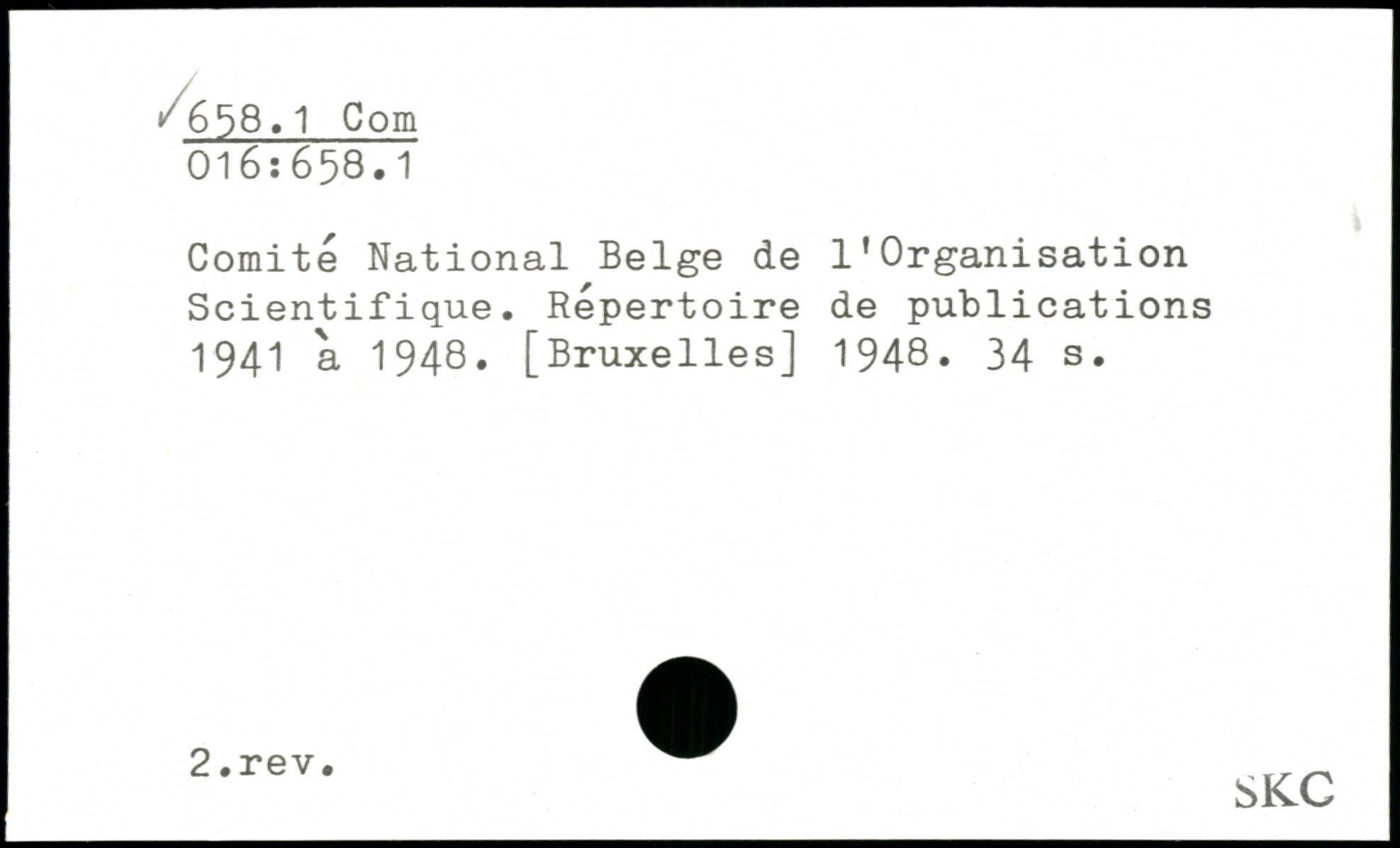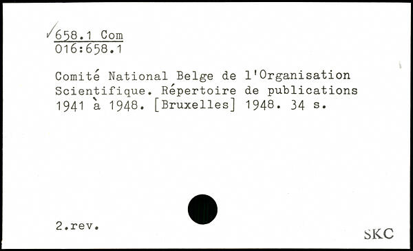 Comité National Belge de l'Organisation Scientifique. Répertoire de publications 1941 a 1948.