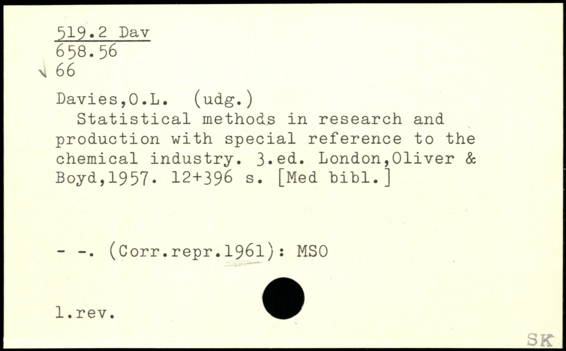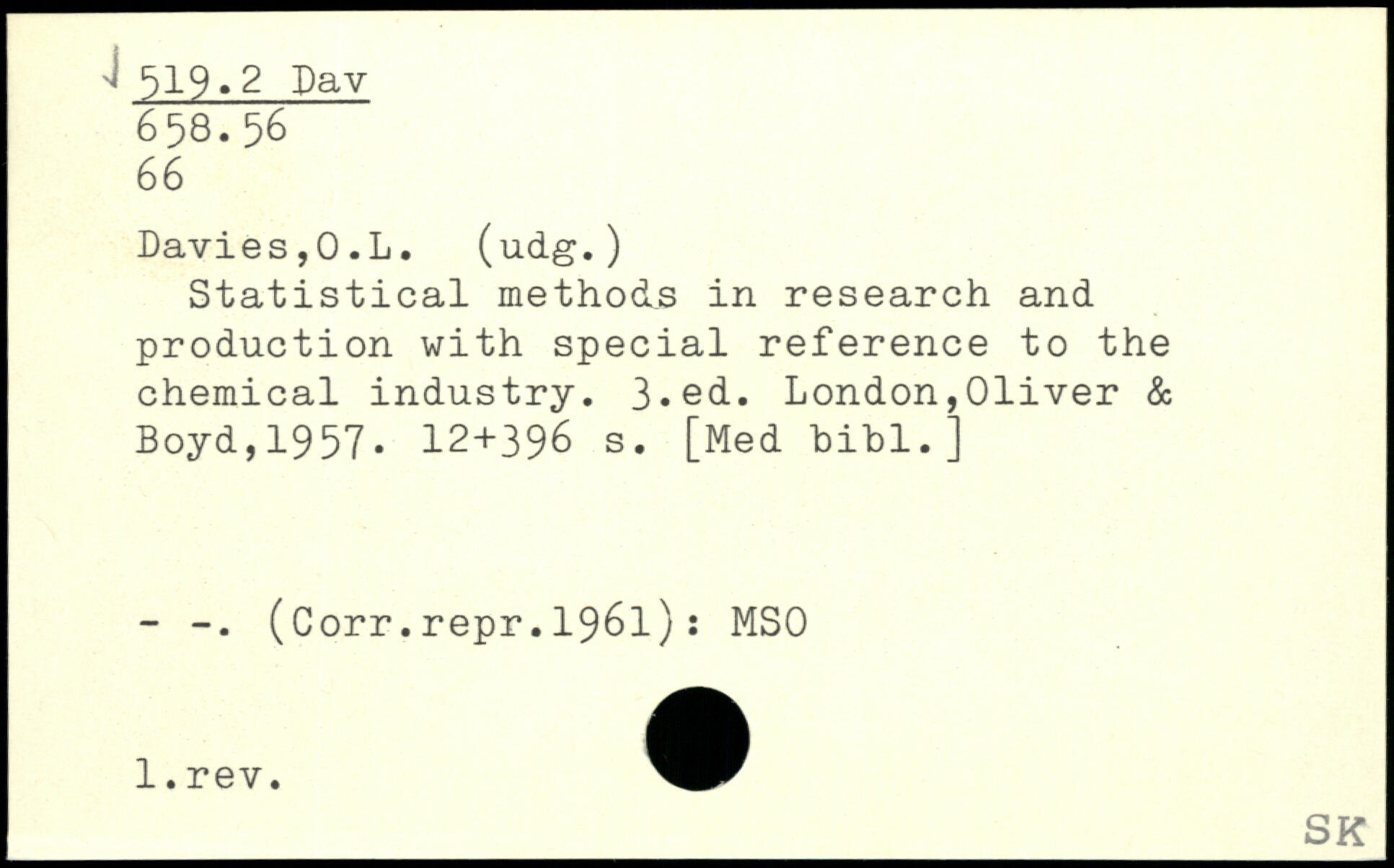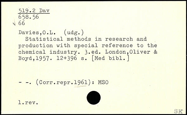 Statistical methods in research and production with special reference to the chemical industry.