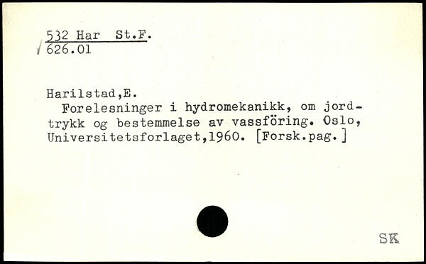 Forelesninger i hydromekanikk, om jord-trykk og bestemmelse av vassforing.