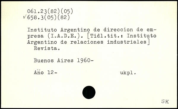 Instituto Argentino de direccion de em-presa (i.A.D.E.). [Tidl.tit.: Instituto Argentino de relaciones industriales] Revista. Buenos Aires 1960- Ano 12- ukpl.