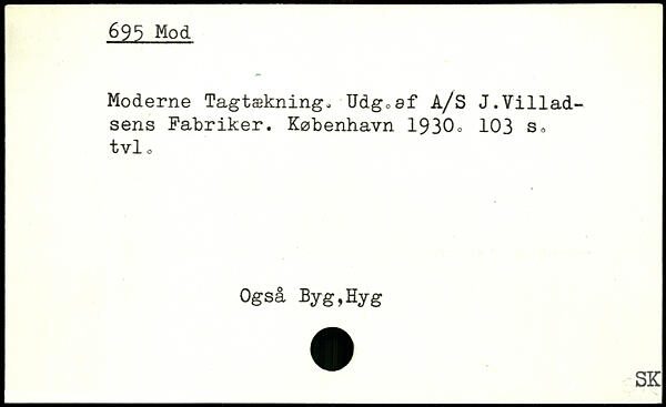 Moderne Tagtækning, Udgoøf A/S J.Villad-sens Fabriker.