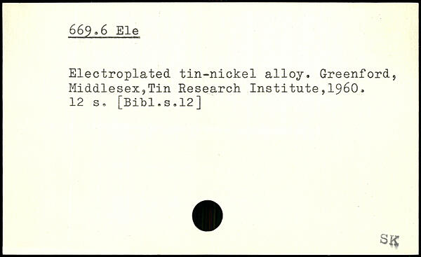 Electroplated tin-nickel alloy. Greenford, Middlesex?Tin Research Institute,1960.