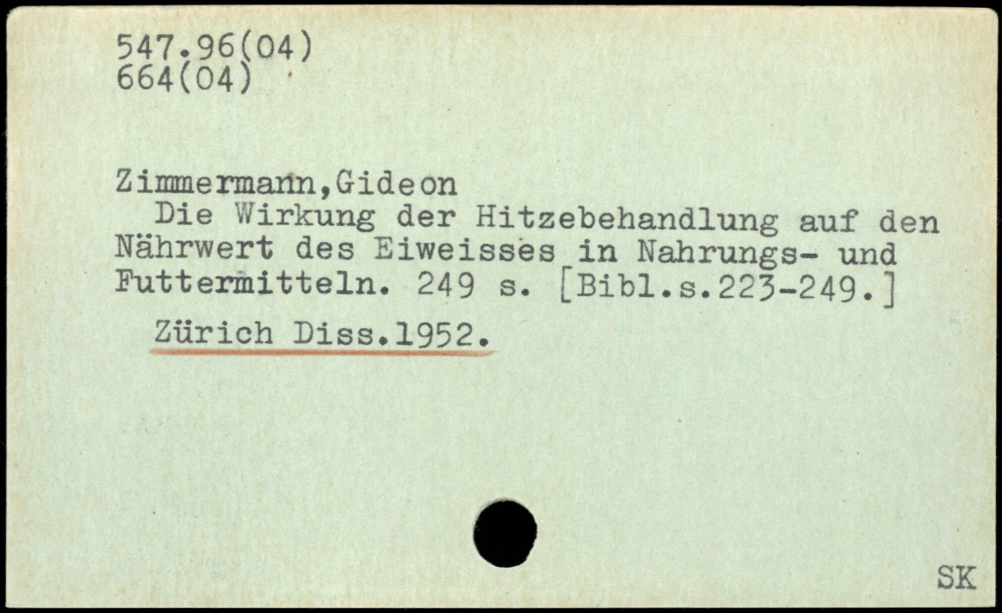 Zimmermailn, Gideon JDie Wirkung^der Hitzebehandlung auf den Nährwert des Eiweisses in Nahrungs- und Futtermitteln