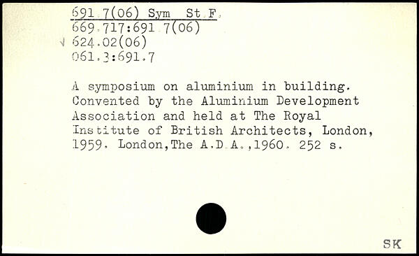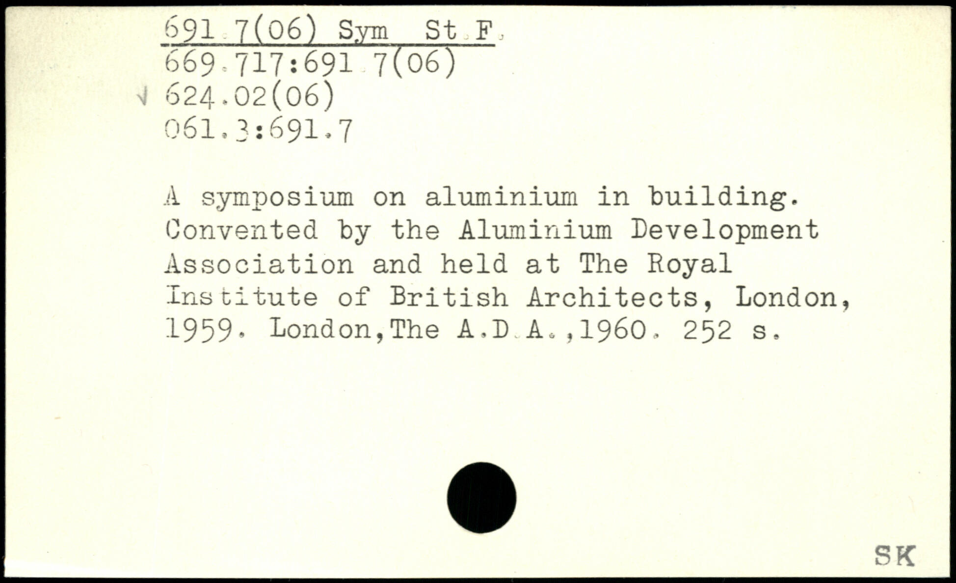 A symposium on aluminium in building. Convented by the Aluminium Development Association and held at The Royal