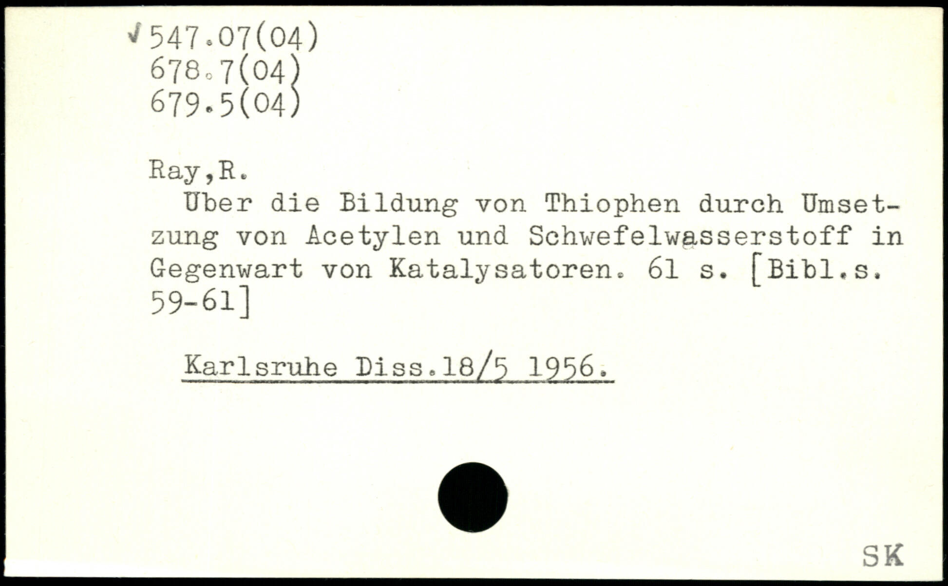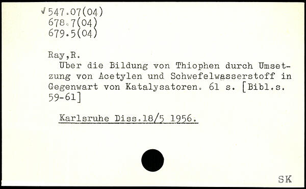 Uber die Bildung von Thiophen durch Umsetzung von Acetylen und Schwefelwasserstoff in Gegenwart von Katalysatoren