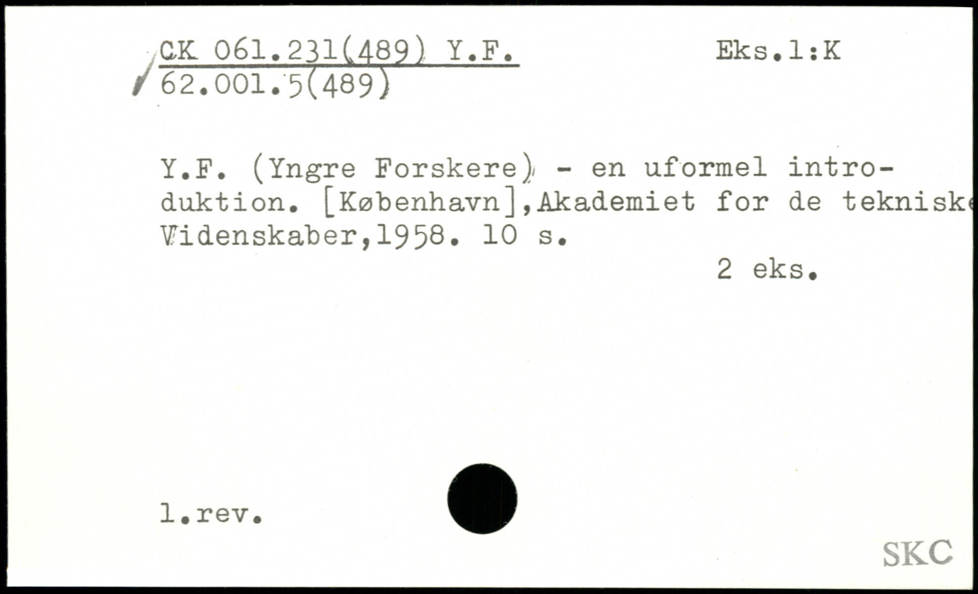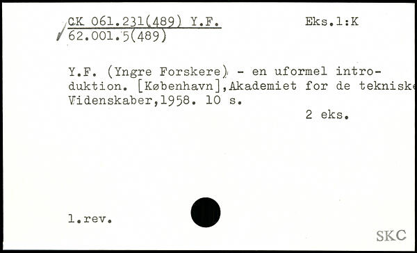 Y.F. (Yngre Forskere) - en uformel introduktion. [København]