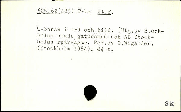 T-banan i ord och bild. (ütg.av Stockholms stads^gatunämnd och AB Stockholms spårvägar. Red.av O.Wigander. (