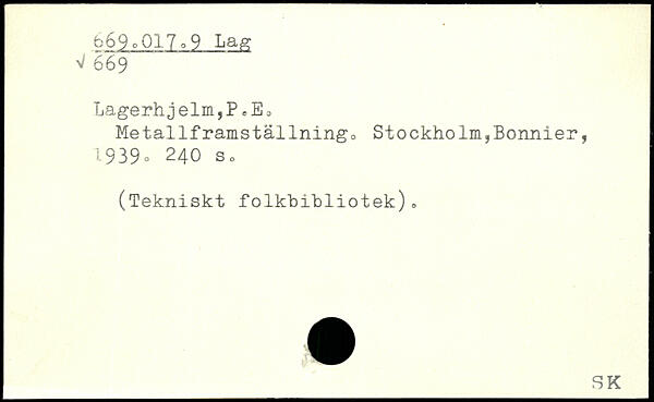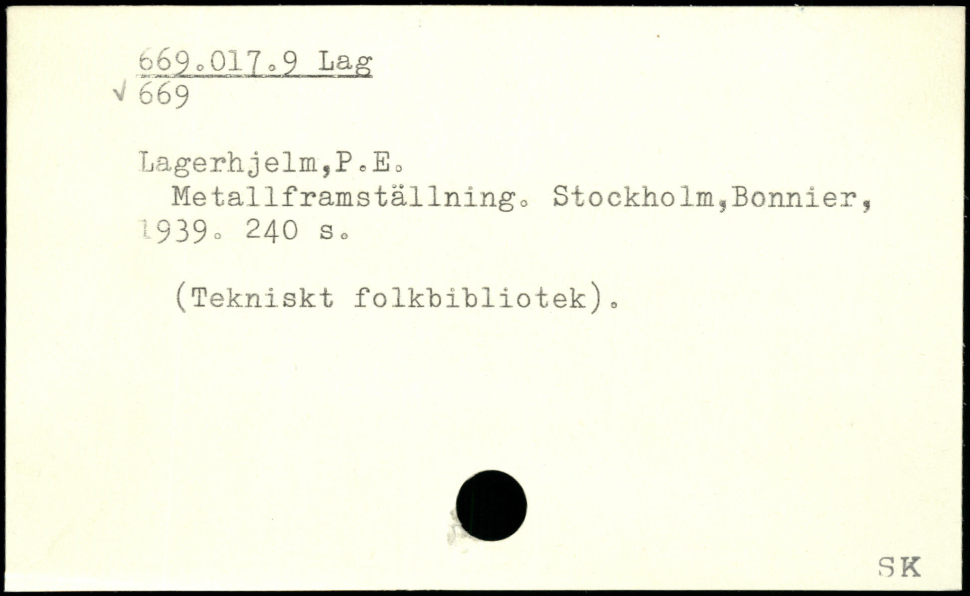 MetalIframstaliningo Stockholm,Bonnier, 1939. 240 So (Tekniskt folkbibliotek)
