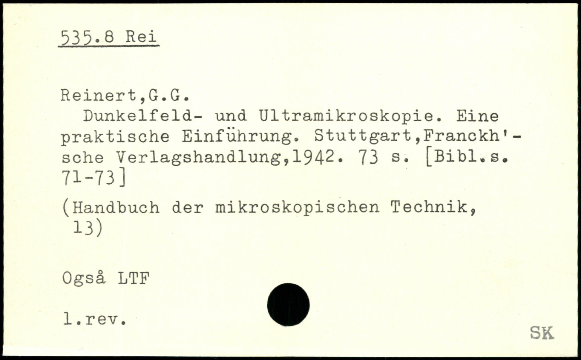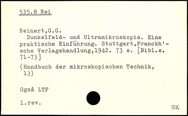 Dunkelfeld- und Ultramikroskopie. Eine praktische Einführung. Stuttgart,Franckh'-sehe Verlagshandlung,1942.