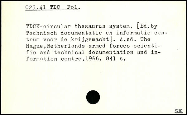 TDCK-circular thesaurus system. [Ed.by Technisch dccumentatie en informatie centrum voor de krijgsmachtJ.