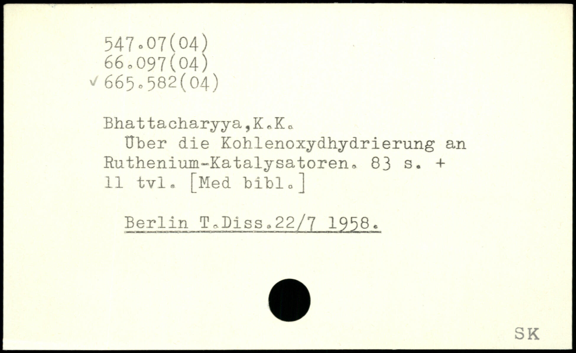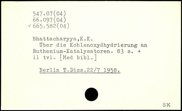 Bhattacharyya,KnK, Über die Kohlenoxydhydrierung an Ruthenium-Katalysatoren