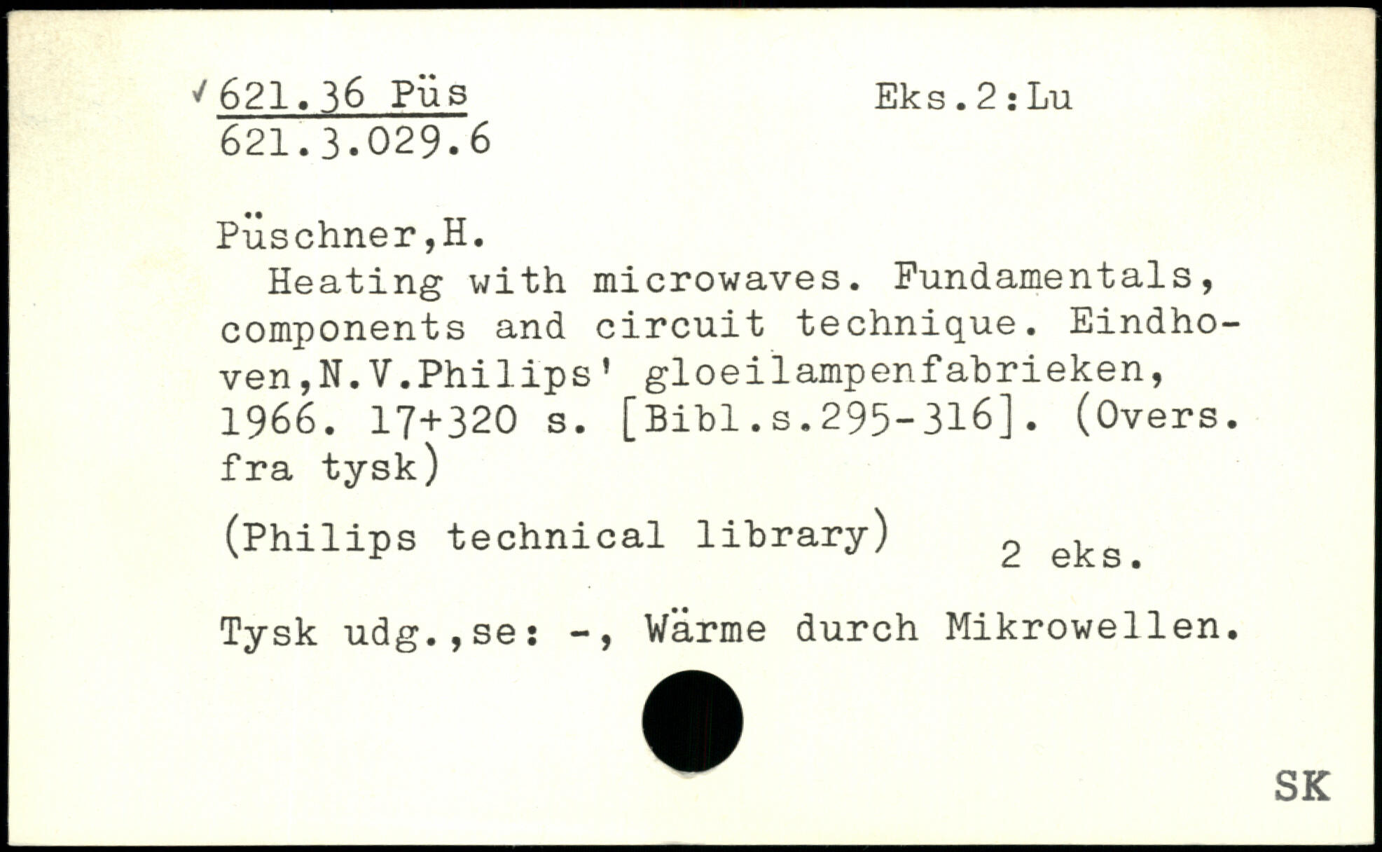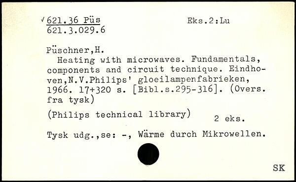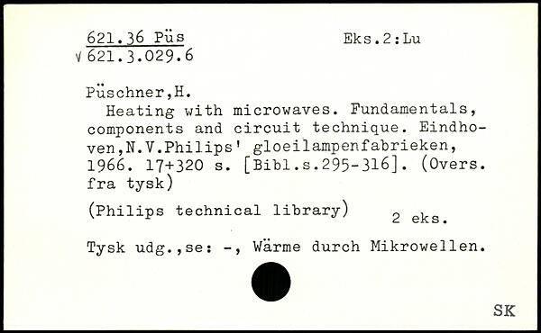 Heating with microwaves. Fundamentals, components and circuit technique. Eindhoven ,N.V.Philips, gloeilampenfabrieken, 1966.