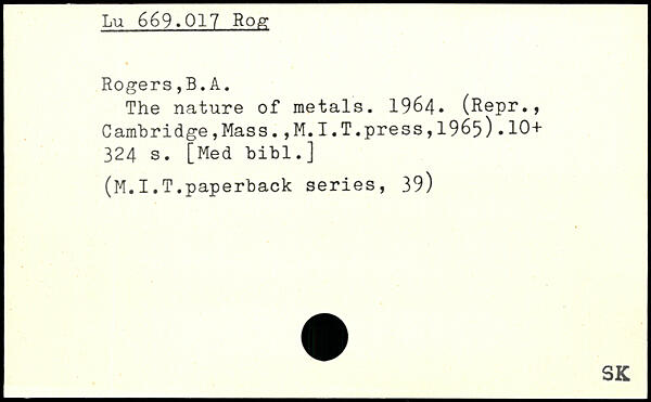 The nature of metals. 1964, (