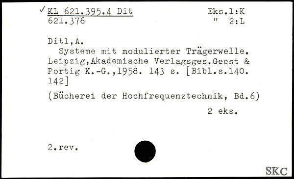 Systeme mit modulierter Trägerwelle. Leipzig,Akademische Verlagsges.Geest & Portig K.-G.,1958. ^