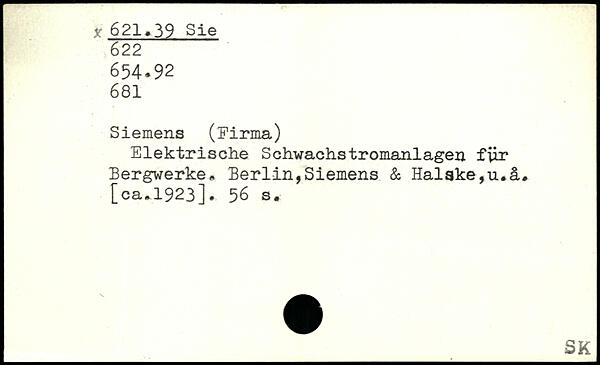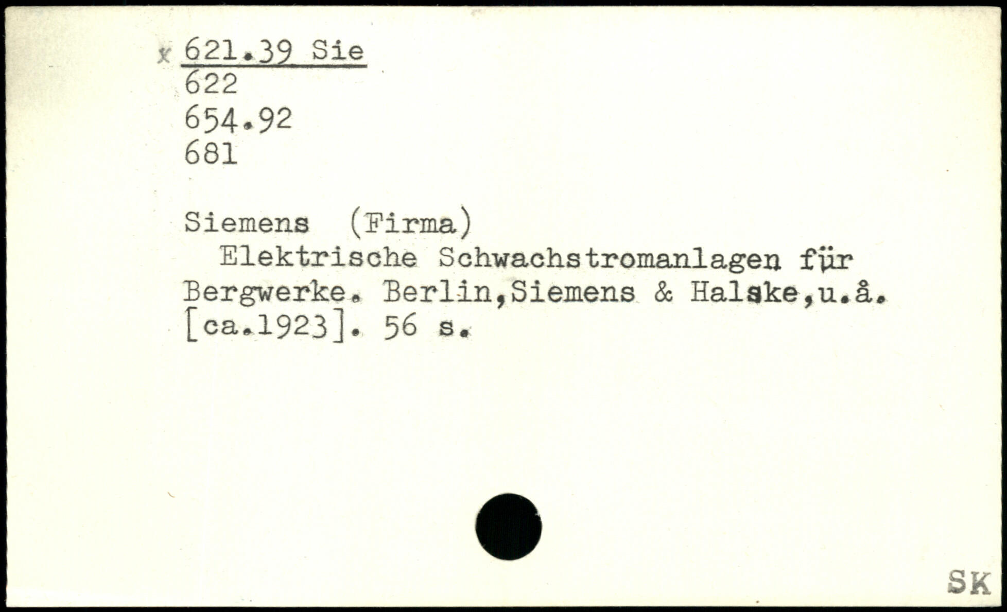 Elektrische Schwachstromanlagen fiir Bergwerke, Berlin,Siemens & Halake,u.å.