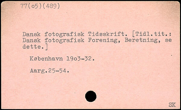 Dansk fotografisk Tidsskrift. [Tidl.tit.: Dansk fotografisk Forening, Beretning, se dette.] København 19o3-32. Aarg.25-54.