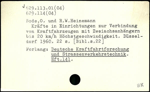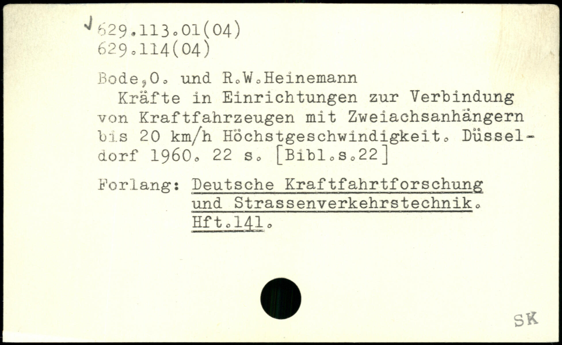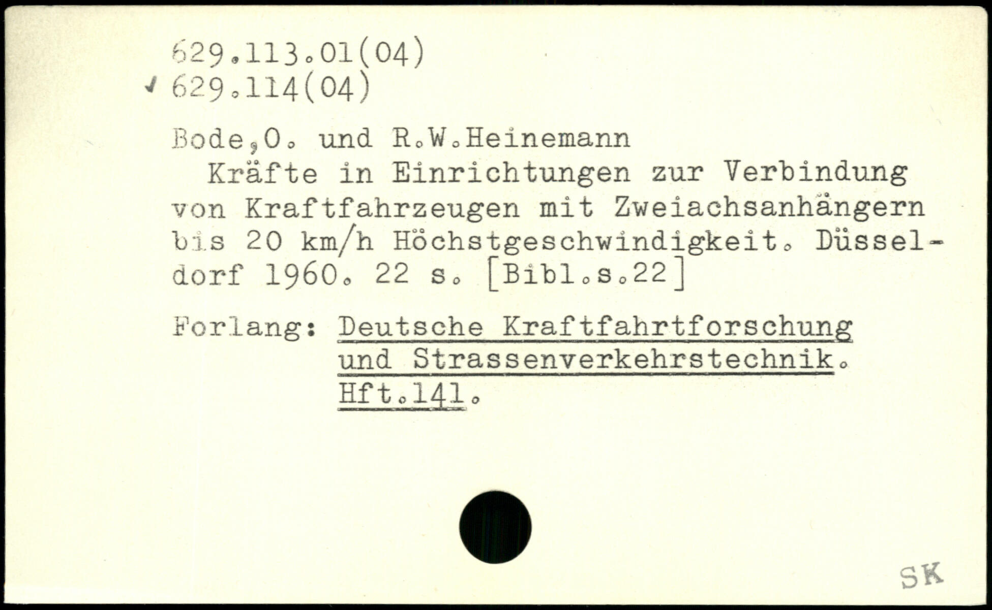 Bode?0o und RoW;,Heinemann Kräfte in Einrichtungen zur Verbindung von Kraftfahrzeugen mit Zweiachsanhängern his 20 km/h Höchstgeschwindigkeit<> Dusseldorf 1960,