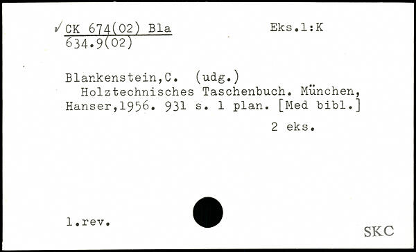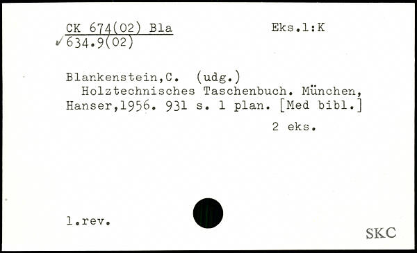 Holztechnisches Taschenbuch, München, Hanser,1956. 931 s, 1 plan. [Med bibl.]