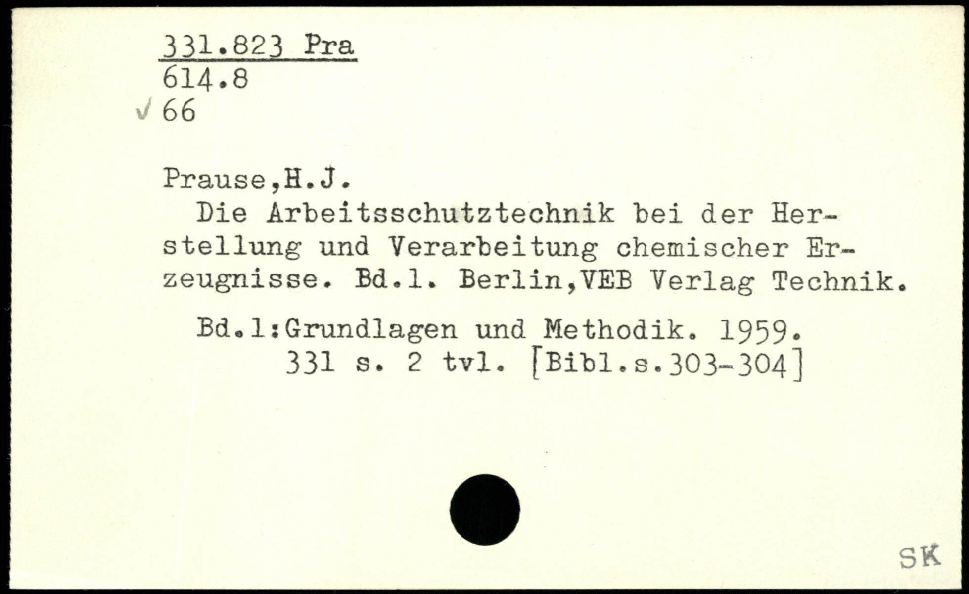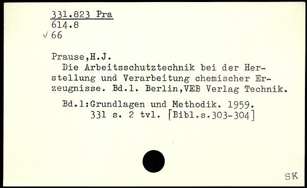 Die Arbeitsschutztechnik bei der Herstellung und Verarbeitung chemischer Erzeugnisse. Bd.l. Berlin,VEE Verlag Technik. Bd.liGrundlagen und Methodik. 1959.