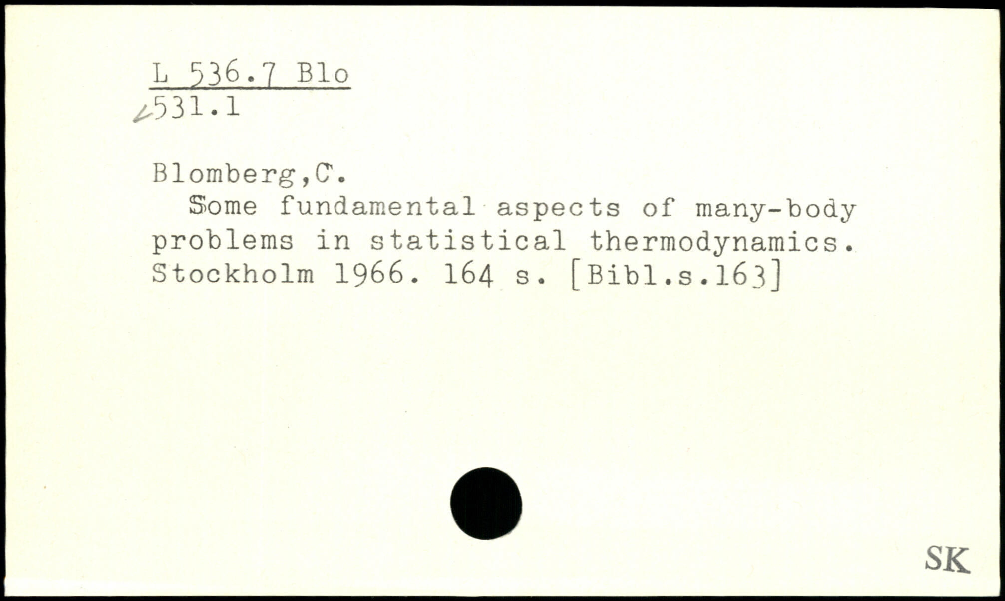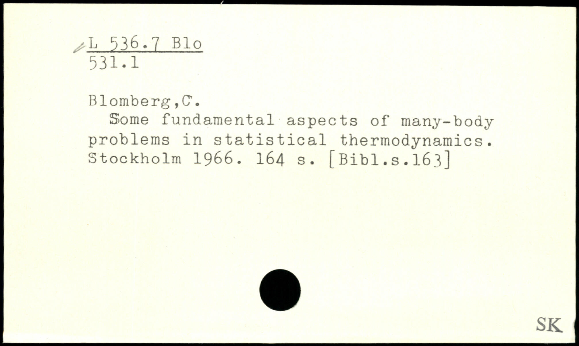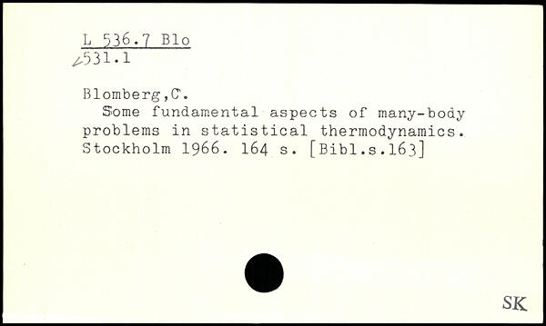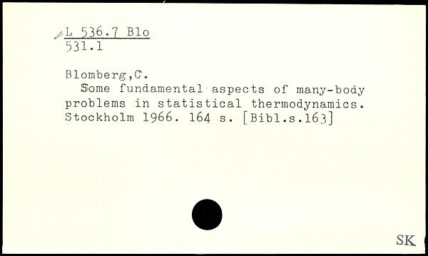 Blomberg ,CT. Some fundamental aspects of many-body problems in statistical thermodynamics.