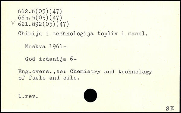 UDK: 662.6(05)(47), 665., 5(05)(47), 621.892(05)(47)