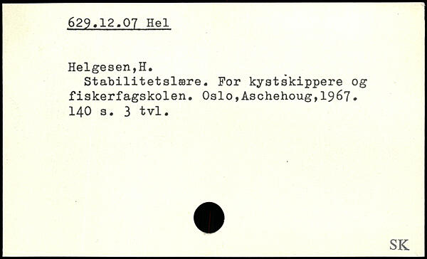 Stabilitetslære. For kystskippere og fiskerfagskolen.