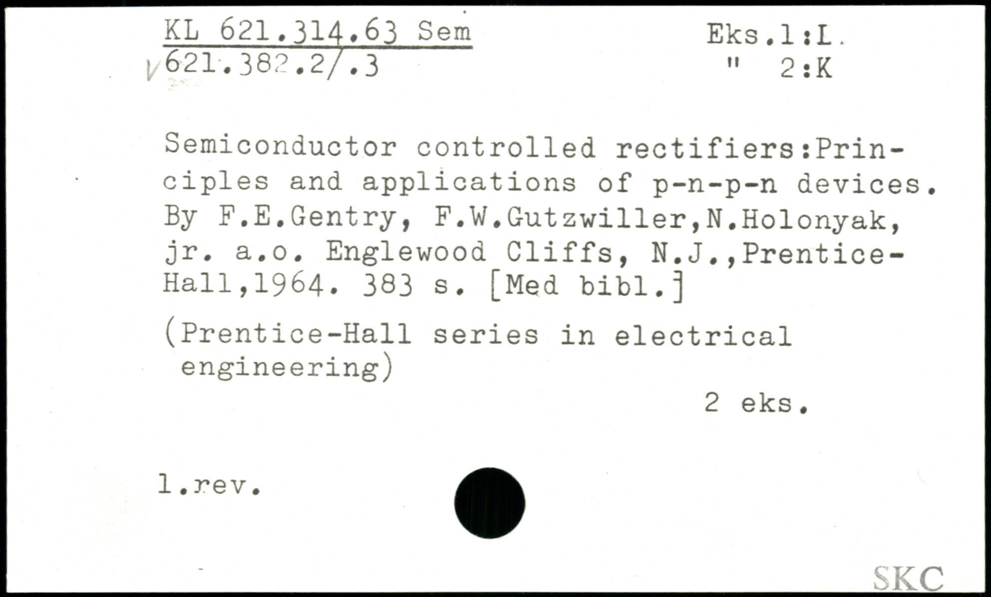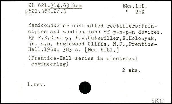 Semiconductor controlled rectifiers:Principles and applications of p-n-p-n devices. By F.E.Gentry, F.W.Gutzwiller,N.Holonyak, jr. a.0.