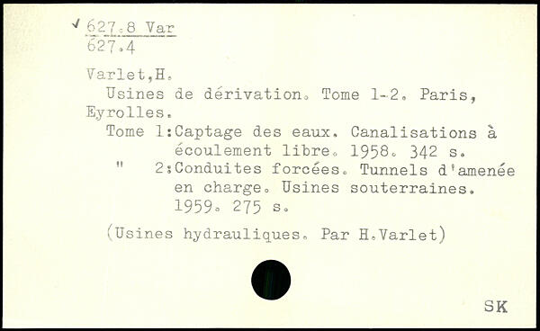Usines de dérivation, Tome 1-2, Paris, Eyrolles. Tome 1:Captage des eaux, Canalisations à écoulement libre, 1958, 342