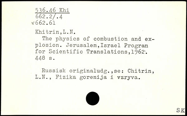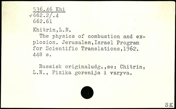 The physics of combustion and explosion. Jerusalem,Israel Program for Scientific Translations,1962.