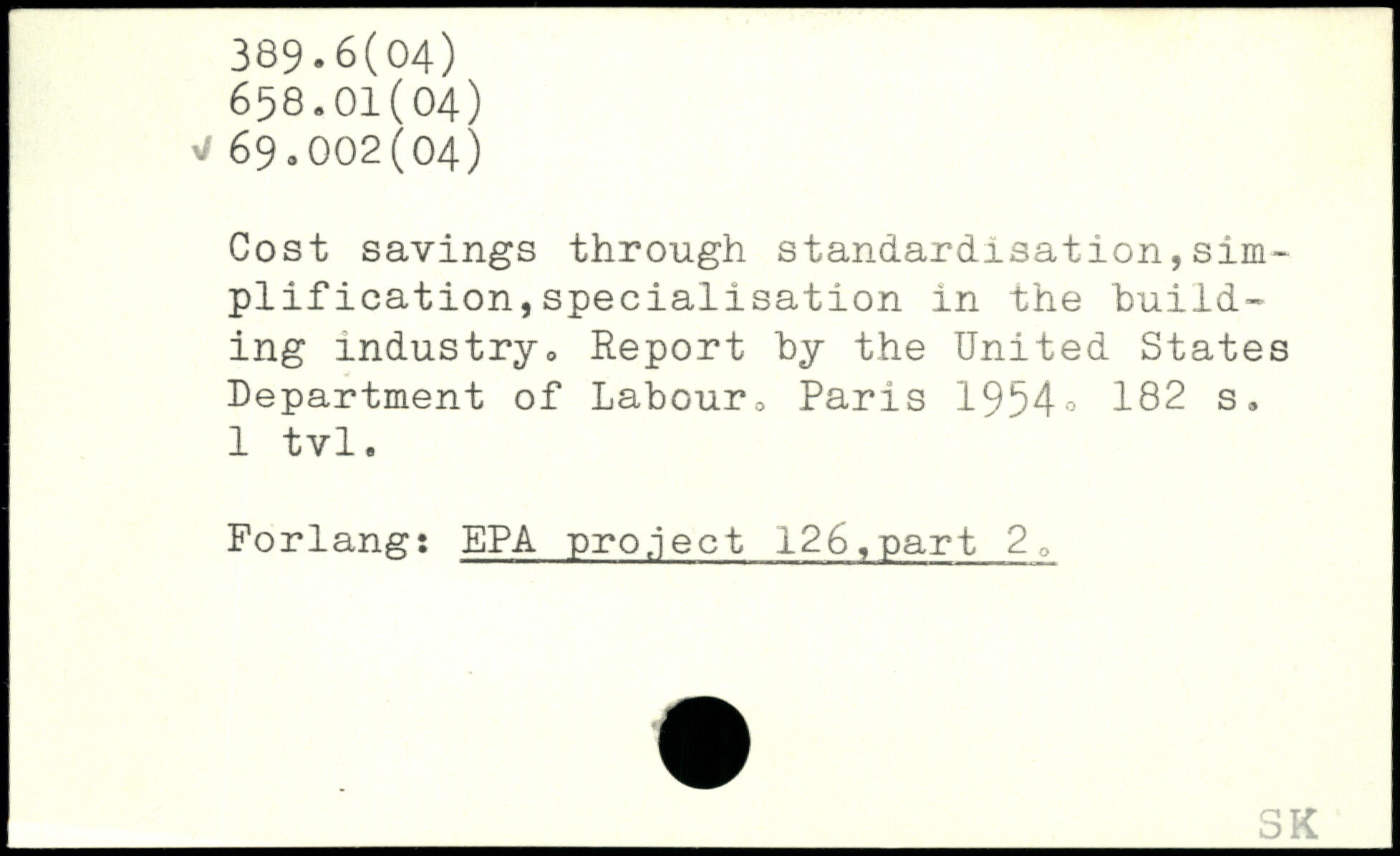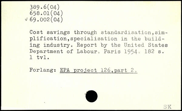 Cost savings through standardisation,simplification, specialisation in the building industry. Report by the United States Department of Labour.