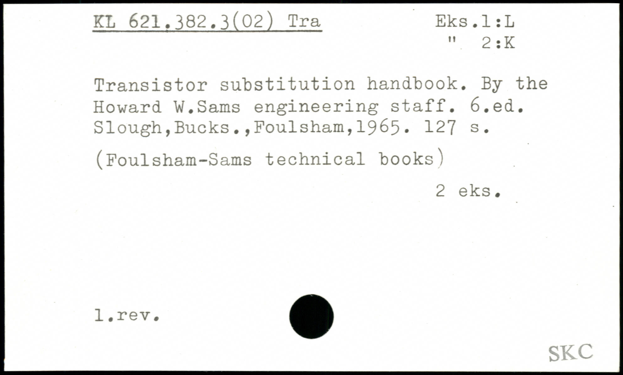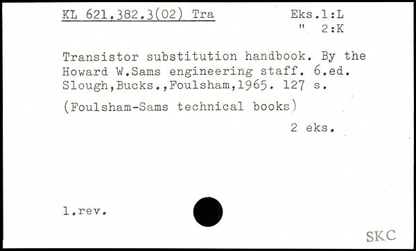 Transistor substitution handbook. By the Howard W.Sams engineering staff.