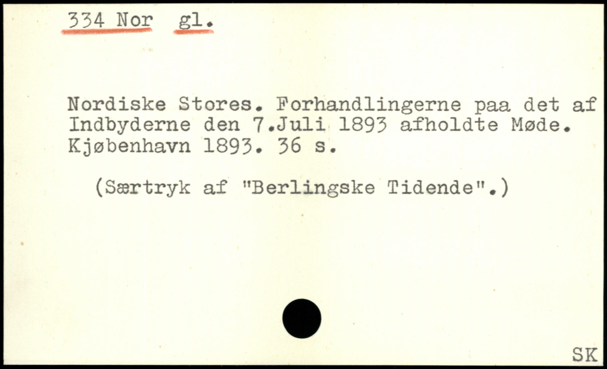 Nordiske Stores. Forhandlingerne paa det af Indbyderne den 7.Juli 1895 afholdte Møde. Kjøbenhavn 1895.