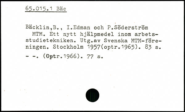 Bäcklin,B., I.Edman och P.Söderström MTM. Ett nytt hjälpmedel inom arbets-studietekniken. Utg.av Svenska MTM-föreningen.