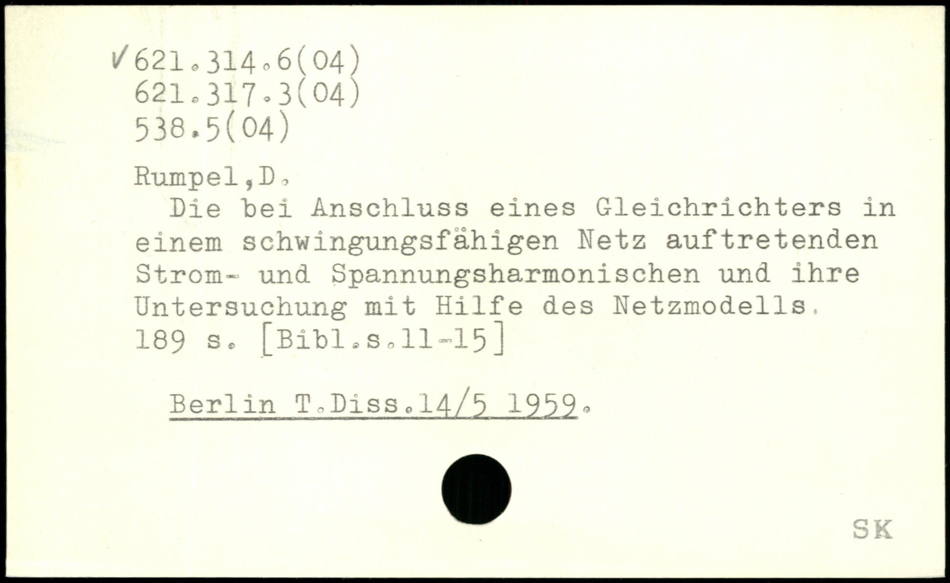 Die "bei Anschluss eines Gleichrichters in einem schwingungsfähigen Netz auftretenden Strom- und Spannungsharmonischen und ihre Untersuchung mit Hilfe des Netzmodells