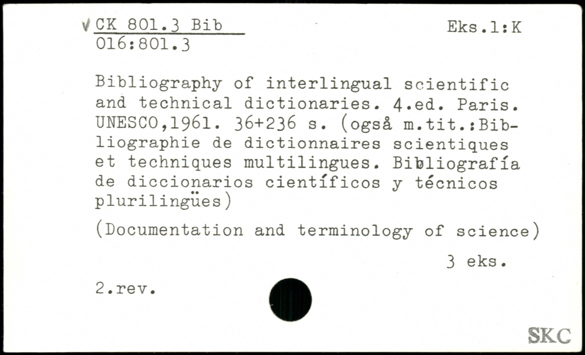 Bibliography of interlingual scientific and technical dictionaries.
