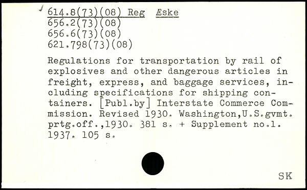 Regulations for transportation by rail of explosives and other dangerous articles in freight, express, and baggage services, including specifications for shipping containers.
