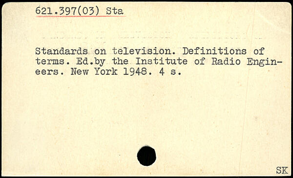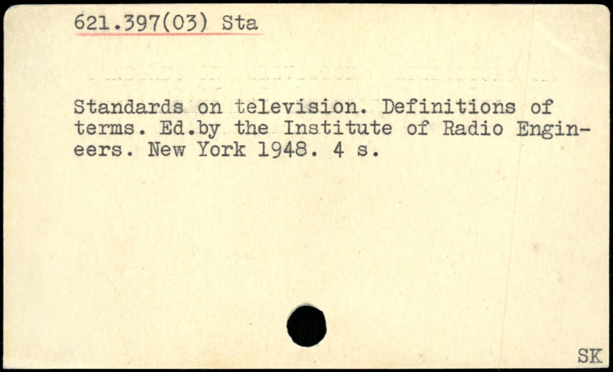 Standards on television. Definitions of terms. Ed.by the Institute of Radio Engineers.