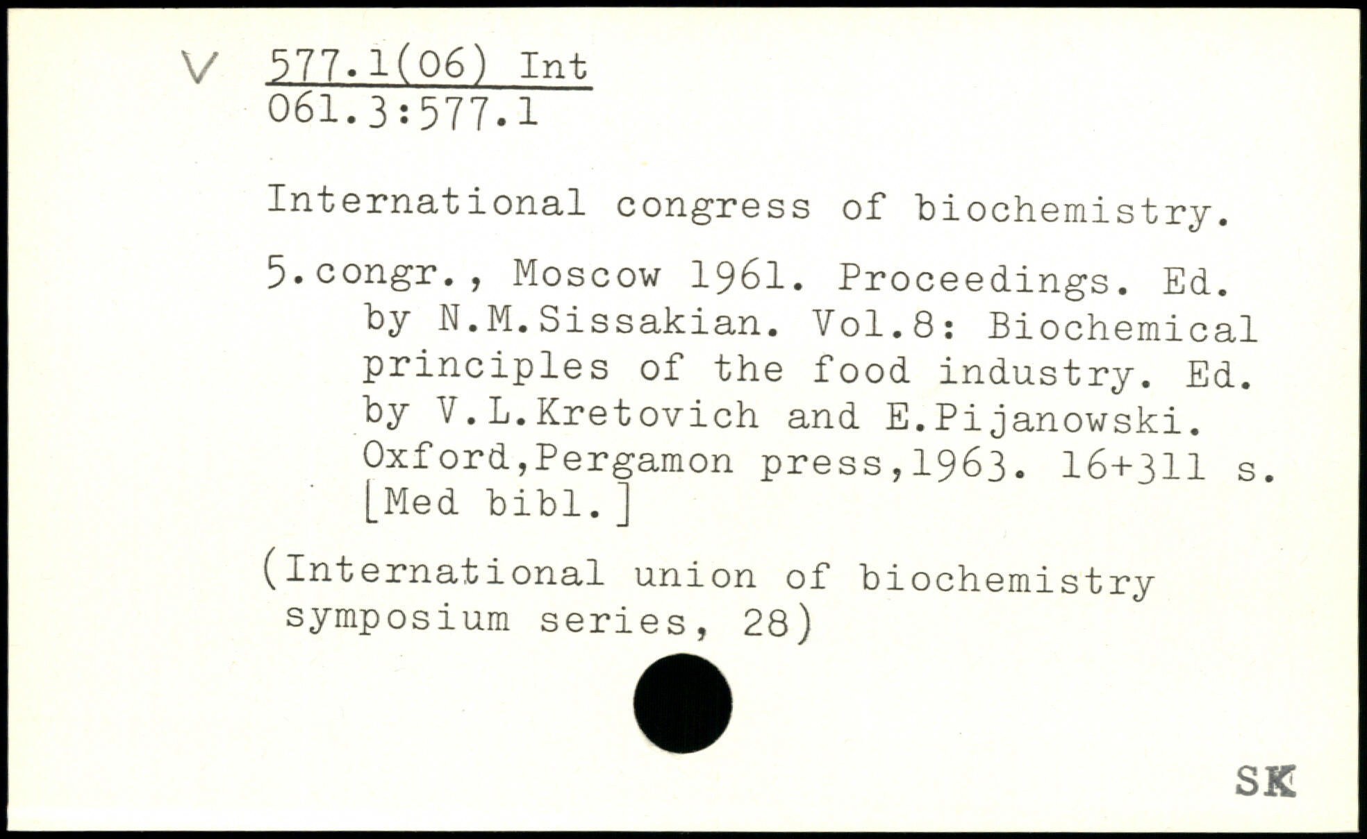 International congress of biochemistry. 5.congr., Moscow 1961. Proceedings. Ed. by N.M.Sissakian.