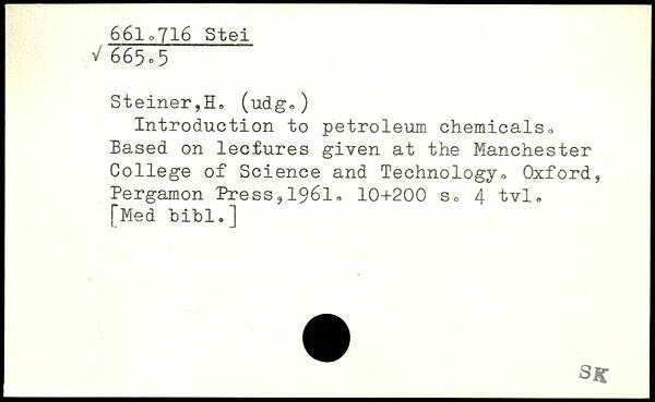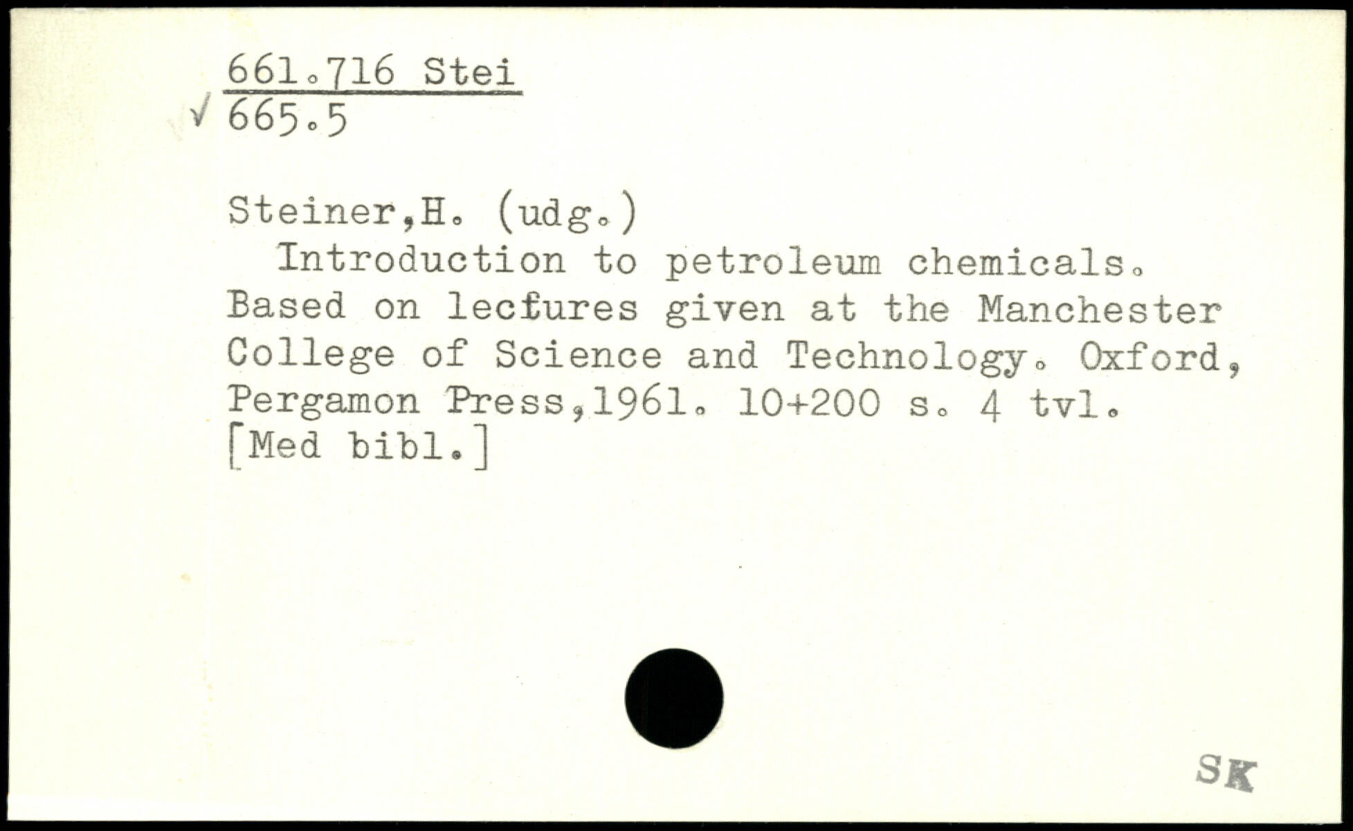Steiner,EL (udg.) Introduction to petroleum chemicals, Based on lectures given at the Manchester College of