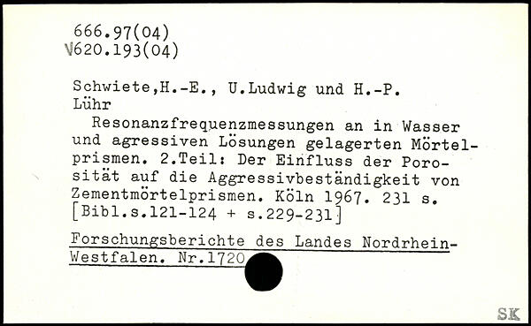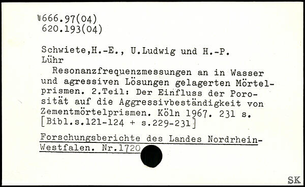 Lühr Resonanzfrequenzmessungen an in Wasser und agressiven Lösungen gelagerten Mörtelprismen. 2.Teils Der Einfluss der Porosität auf die Aggressivbeständigkeit von Zementmörtelprismen.