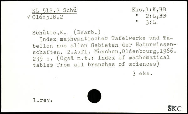 UDK: 518.2 Schü, 016:518.2