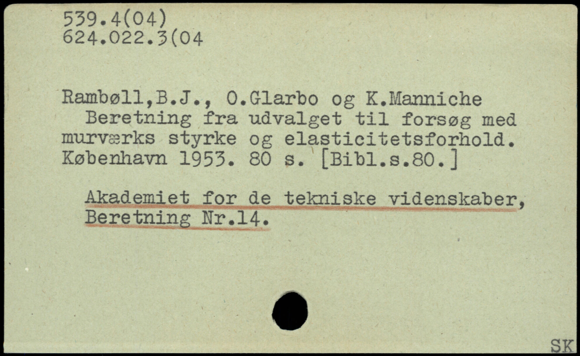 Rambøll,B.J., O.Glarbo og K.Manniche Beretning fra udvalget til forsøg med murværks styrke og elasticitetsforhold.