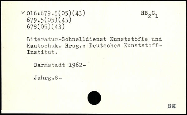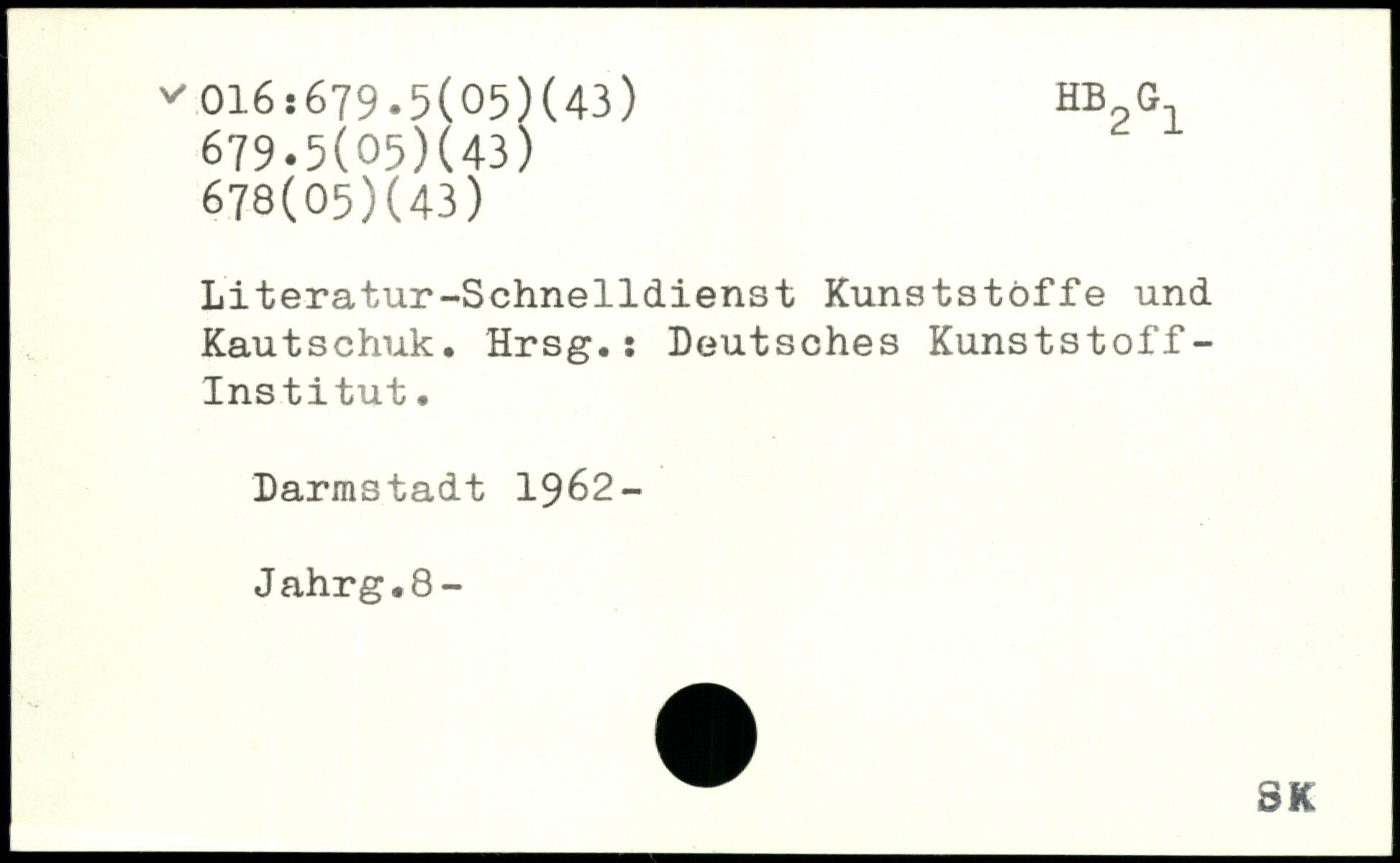 Literatur-Schnelldienst Kunststoffe und Kautschuk. Hrsg.: Deutsches Kunststoff-Institut. Darmstadt 19&2- J ahrg.8-