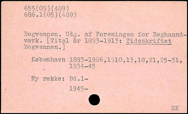 Bogvennen. Udg. af Foreningen for Boghaand-værk. [Titel år 1893-1915: Tidsskriftet Bogvennen.]